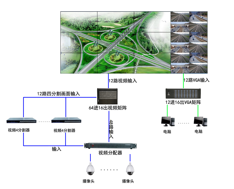 顯示系統(tǒng)可接入各種制式復(fù)合視頻信號(hào)、DVI信號(hào)、HDMI信號(hào)、VGA等信號(hào)的輸入。信號(hào)切換顯示在屏幕上不出現(xiàn)雪花點(diǎn)、拖尾、延遲現(xiàn)象。拼接墻顯示系統(tǒng)可同時(shí)顯示輸入信息中的任意1路以上信號(hào),任意一路輸入信號(hào)既可整屏顯示、單屏、全屏、跨屏漫游拼接顯示,多畫面分割功能。拼接方案可采用機(jī)柜式安裝支架,壁掛安裝,機(jī)柜等安裝可實(shí)現(xiàn)零距離拼縫,美觀大方;又可方便拆卸及安裝維護(hù)。 我公司通過先進(jìn)的技術(shù),完善的方案使液晶拼接顯示系統(tǒng)可以將各類信號(hào)在液晶拼接墻上顯示,形成一套功能完善、技術(shù)先進(jìn)的信息顯示管理控制系統(tǒng),為用戶提供先進(jìn)的技術(shù)服務(wù),滿足工作及業(yè)務(wù)發(fā)展的各種需要。