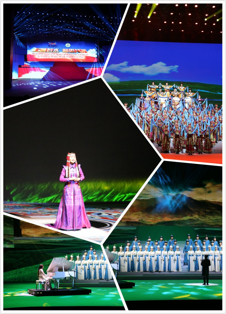 中蒙博覽會(huì)開(kāi)幕式晚會(huì)在烏蘭恰特大劇院演出。晚會(huì)以“上善若水·和衷共濟(jì)”為主題,節(jié)目?jī)?nèi)容融合蒙古族長(zhǎng)調(diào)、呼麥等民歌民樂(lè)及芭蕾舞、俄羅斯舞、柔術(shù)、服裝服飾展示、京劇、交響樂(lè)等藝術(shù)形式,為兩國(guó)觀眾奉獻(xiàn)一臺(tái)熱烈、友好的高水準(zhǔn)文化盛宴。本次演出采用了我公司的巴可4萬(wàn)流明投影機(jī)6臺(tái)實(shí)現(xiàn)了非常壯觀的視覺(jué)盛宴。