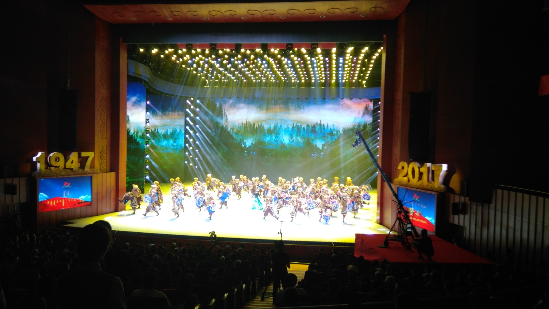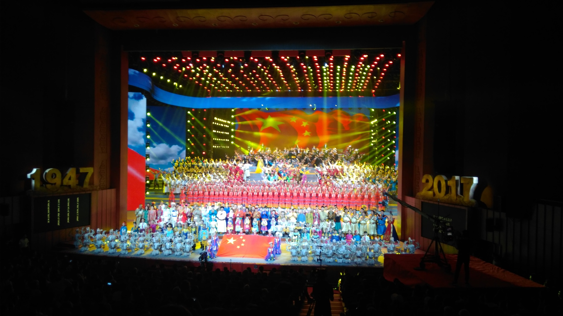 慶祝內(nèi)蒙古自治區(qū)成立70周年文藝晚會(huì)《贊歌》在內(nèi)蒙古烏蘭恰特大劇院精彩呈現(xiàn)。中共中央政治局常委、全國(guó)政協(xié)主席、中央代表團(tuán)團(tuán)長(zhǎng)俞正聲和各族各界干部群眾等共約1300人觀看演出。