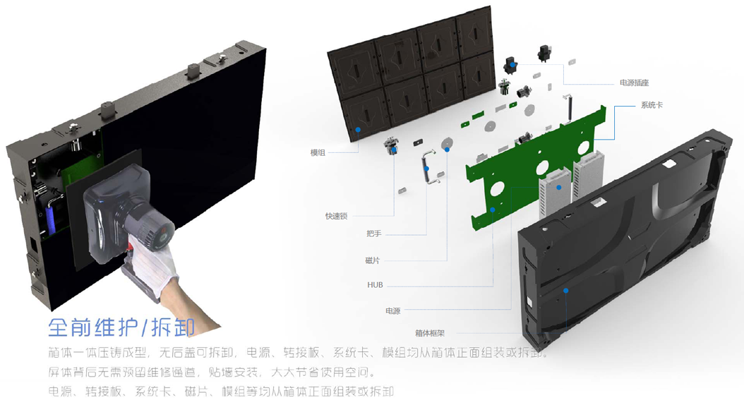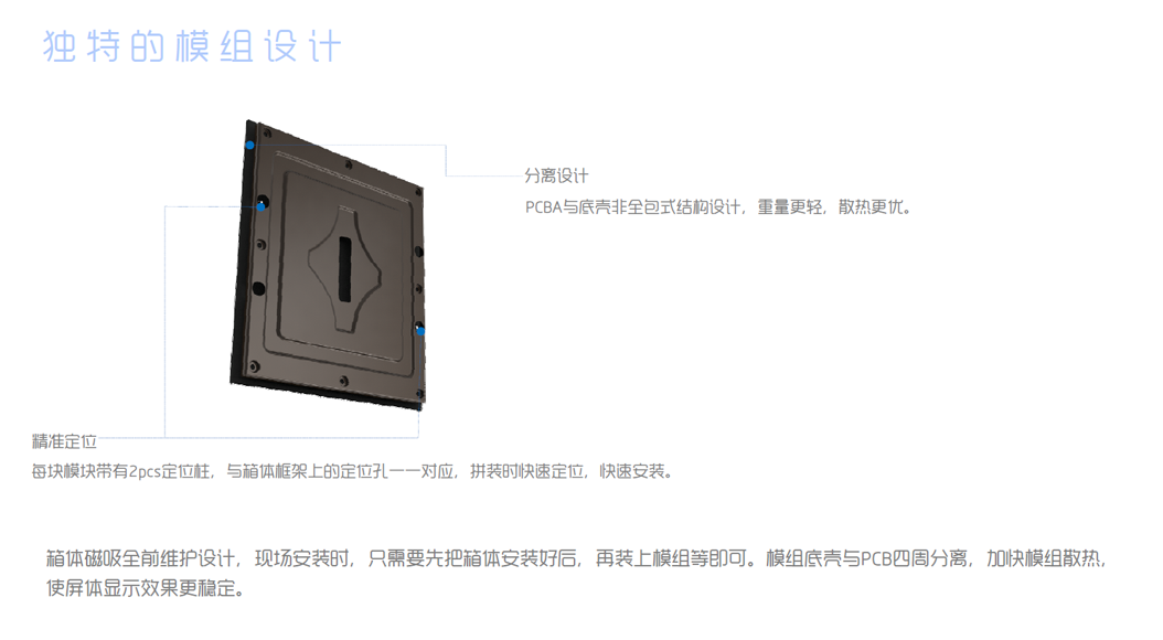 可實(shí)現(xiàn)任意大小尺寸無縫拼接、模塊化維護(hù)。其播放的整個(gè)畫面色彩均勻,高清逼真,沒有普通顯示屏常見的汗斑、亮線等不正常顯示,畫面切換柔和不閃爍,畫質(zhì)非常細(xì)膩,直逼電視機(jī)的播放效果。